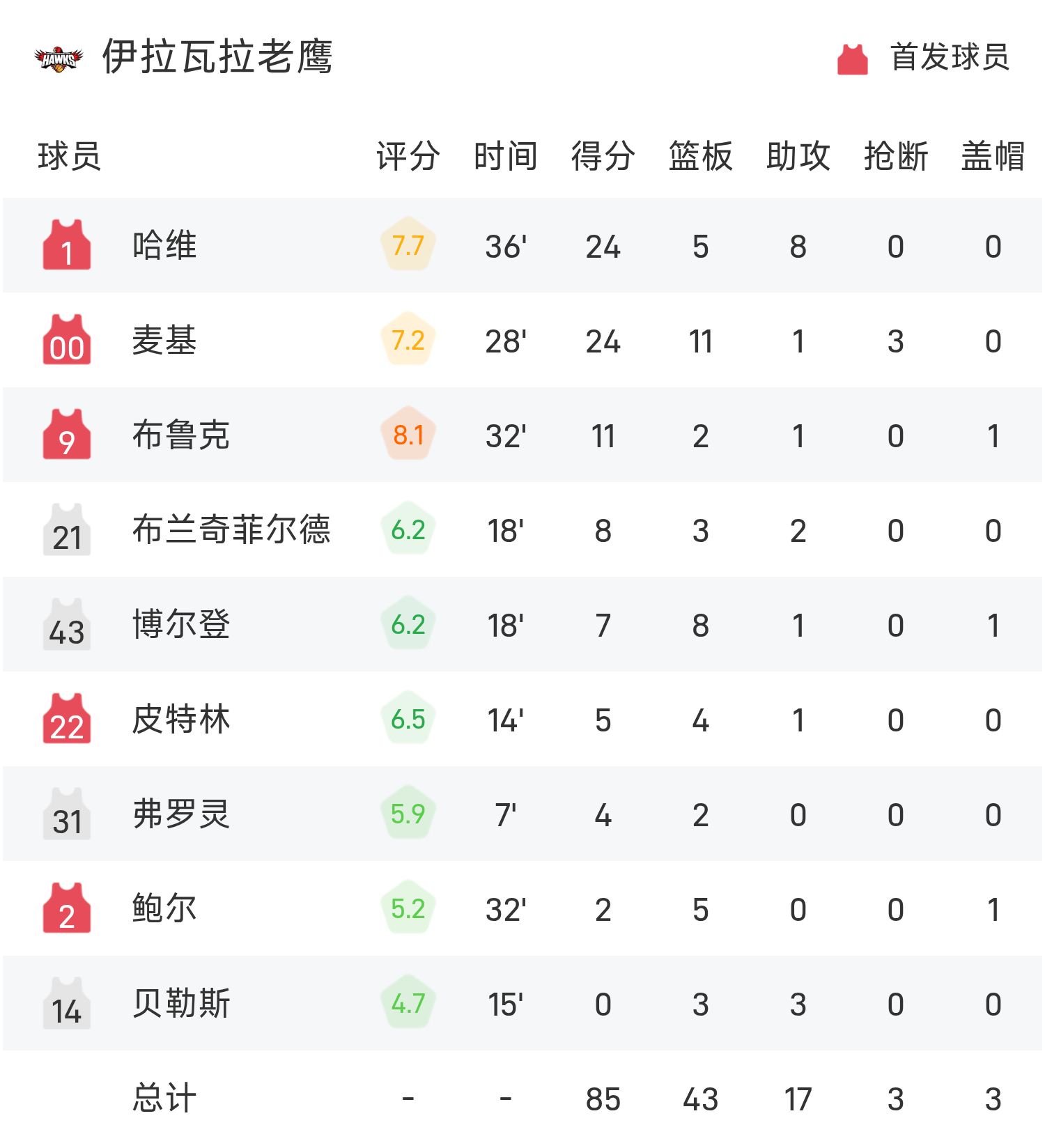 6686体育app10月25日讯 25/26赛季NBL 常规赛,珀斯野猫对阵伊拉瓦拉老鹰。双方全场战罢,珀斯野猫84-85不敌伊拉瓦拉老鹰。哈维砍下全场最高的24分5板8助,率领伊拉瓦拉老鹰胜利取胜。