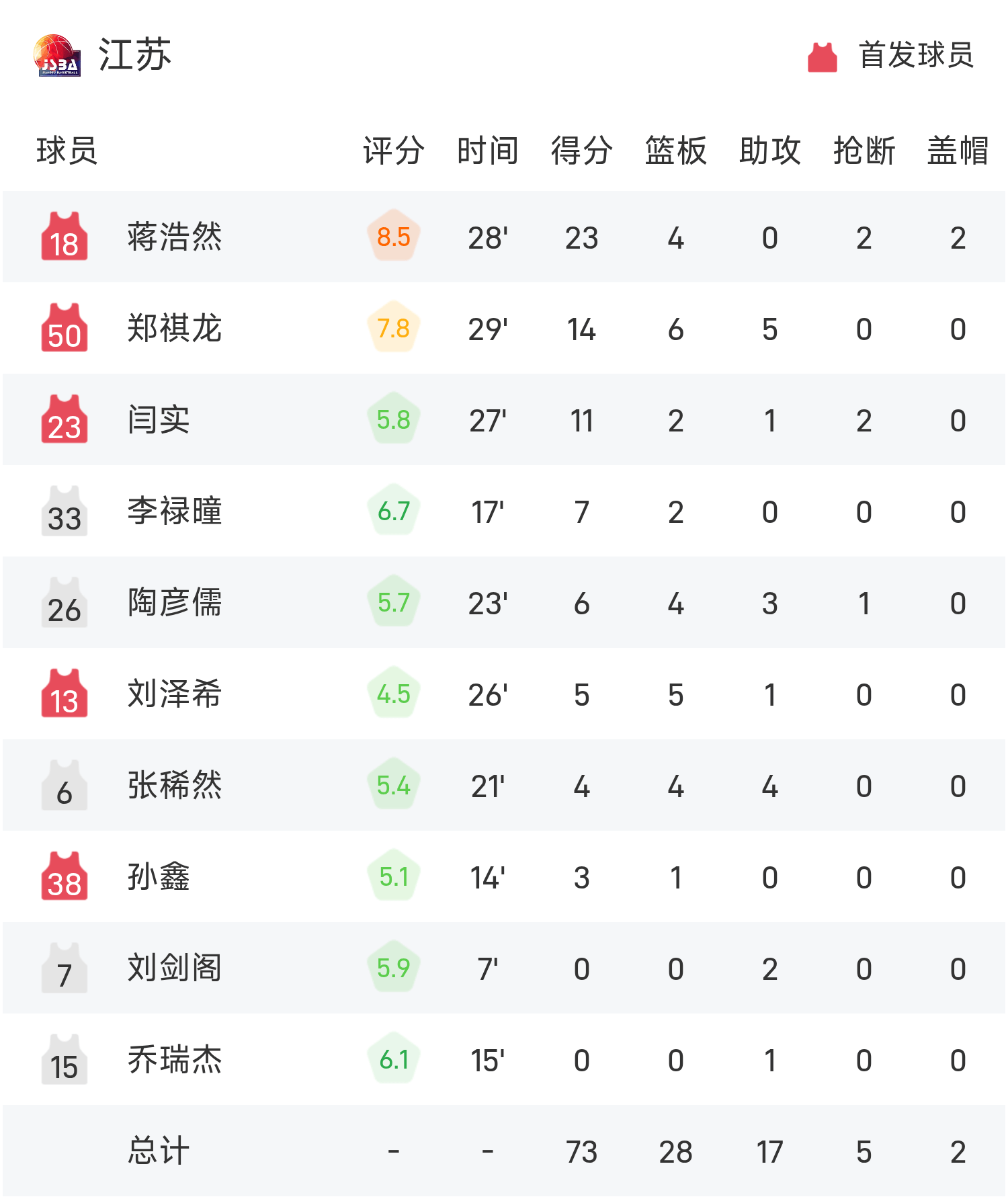 6686体育app11月06日讯 全运男篮 分组赛,江苏对阵广东。双方全场战罢,江苏73-96不敌广东。徐杰砍下全场最高的29分3板5助,率领广东胜利取胜,江苏半场保持领跑位但第三节仅得9分。