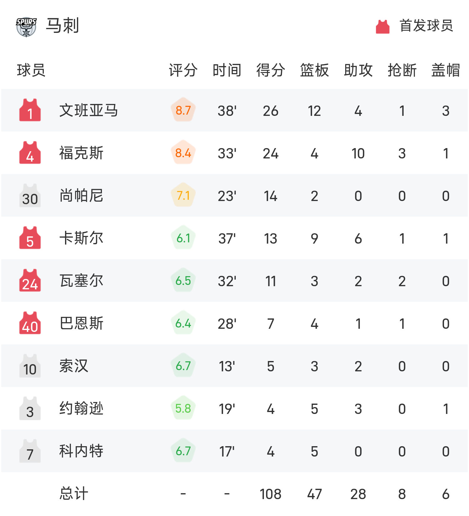 6686体育app11月15日讯 25/26赛季NBA 常规赛 NBA杯分组赛,马刺对阵勇士。双方全场战罢,马刺108-109不敌勇士。库里砍下全场最高的49分4板2助,率领勇士胜利取胜。