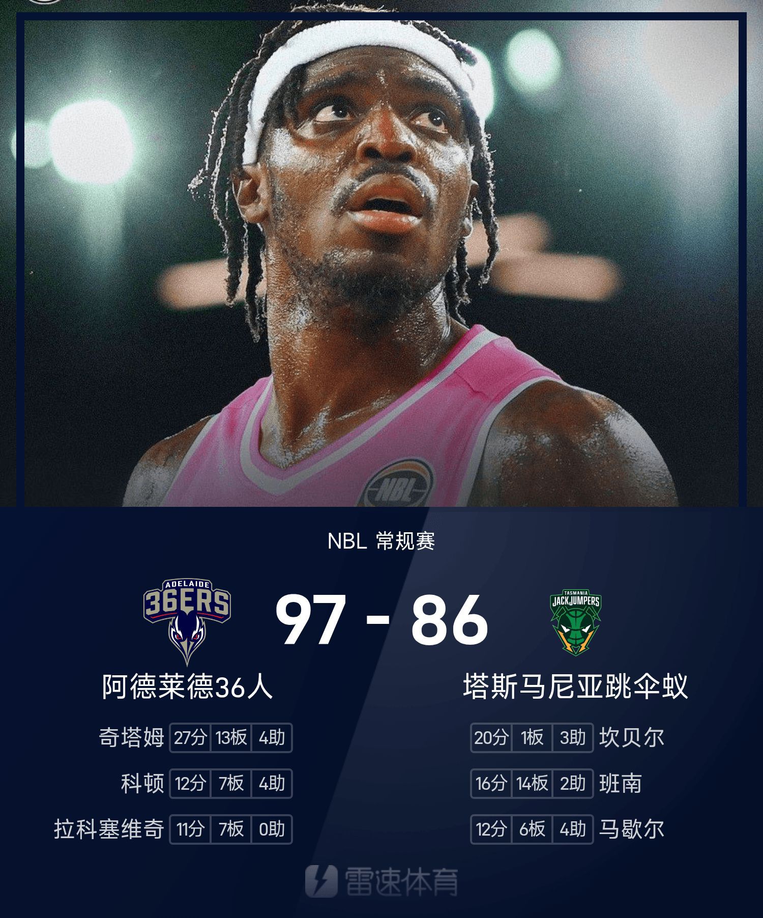 NBL战报:奇塔姆27分13板,36人97-86击败跳伞蚁