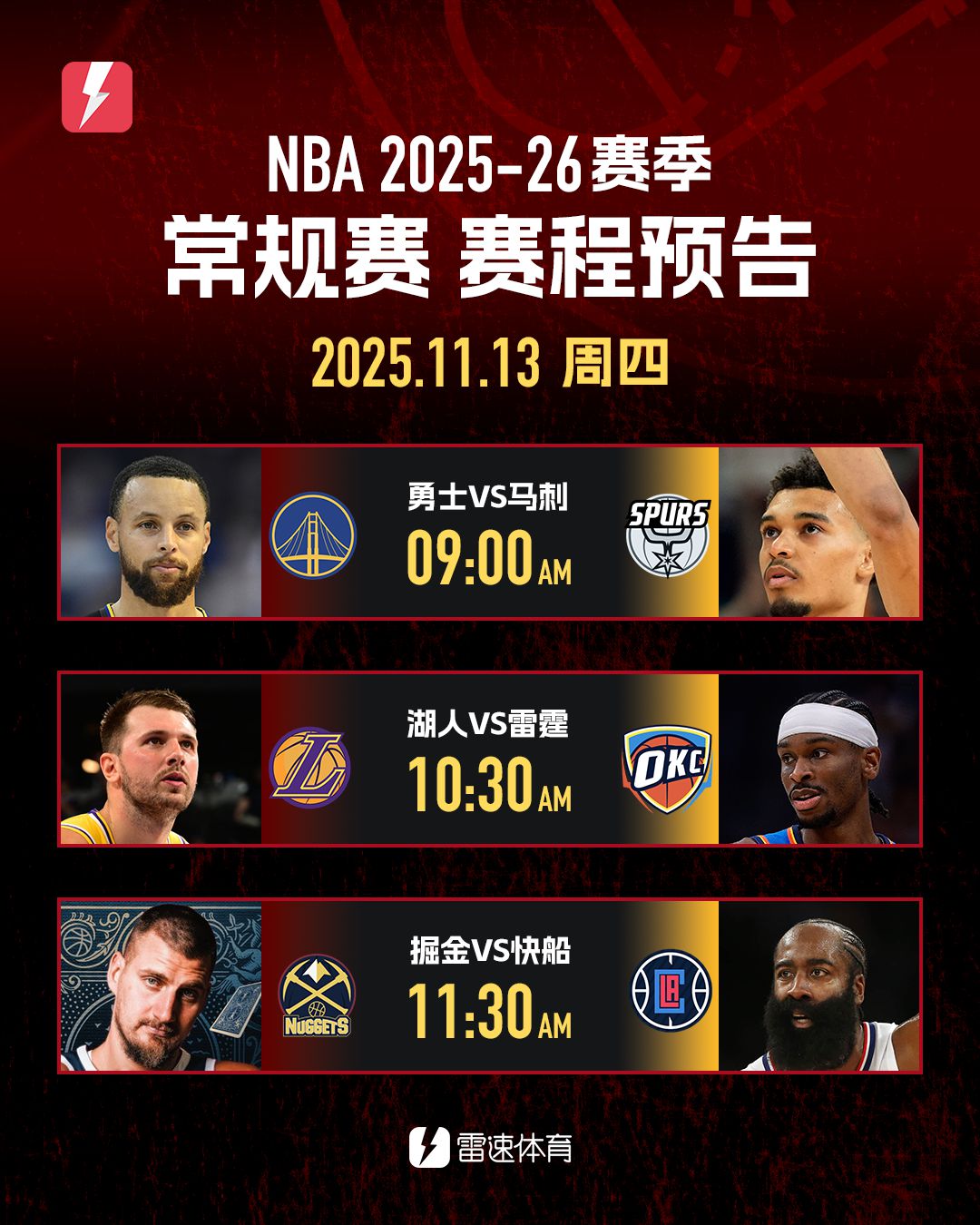6686体育app11月12日讯 明日NBA迎来超级竞赛日,其中看点多多,杨瀚森所在的开拓者连续客队场作战,而勇士、雷霆、快船、掘金等队将迎来背靠背的作战。