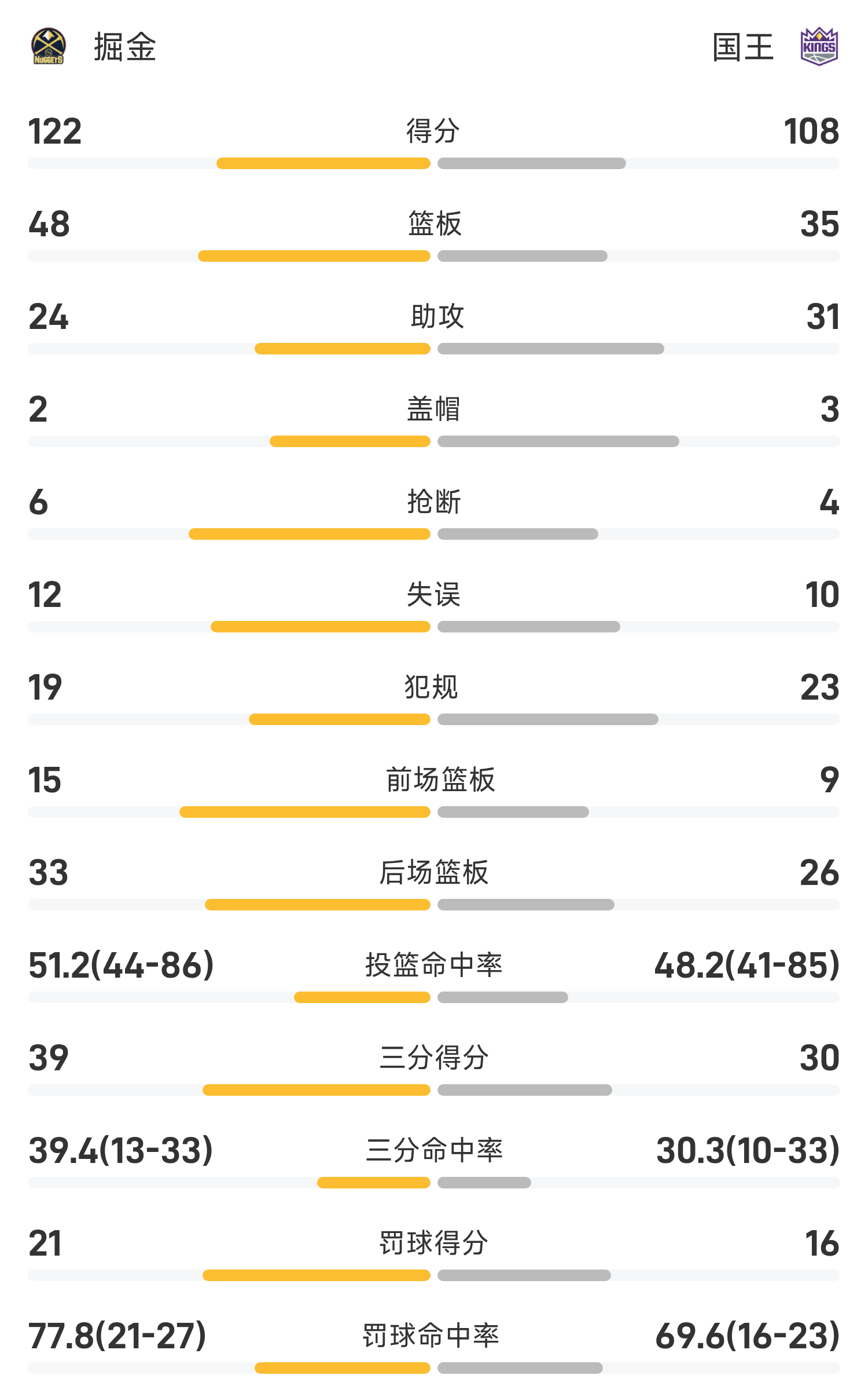 NBA战报:约基奇35分15板7助,掘金122-108击败国王