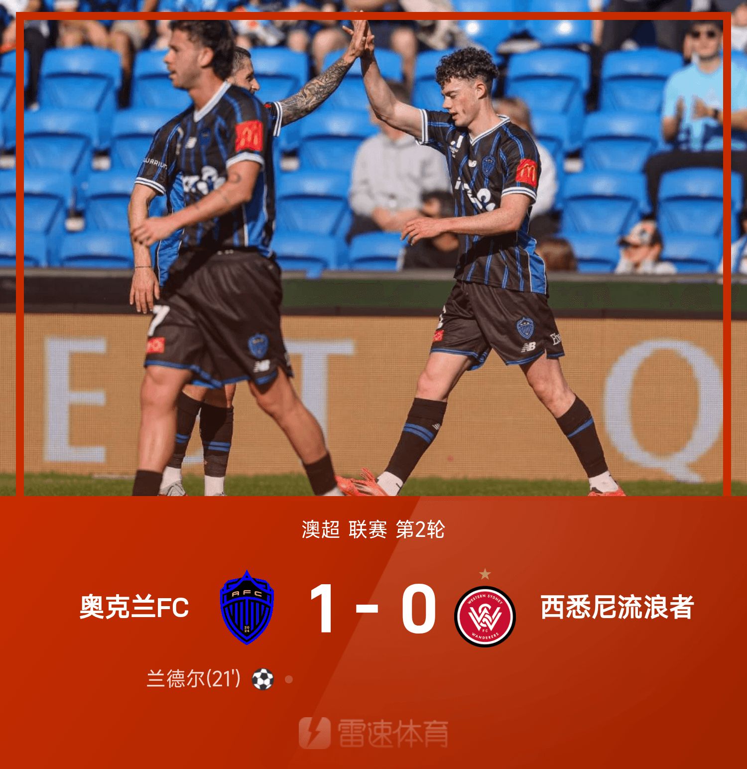 澳超战报:兰德尔外围射门建功,奥克兰1-0力克西悉尼流浪者