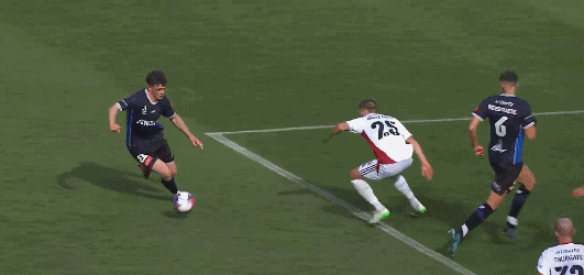 26’奥克兰守门员及时出击,将对手单刀奋力扑出拯救球队
