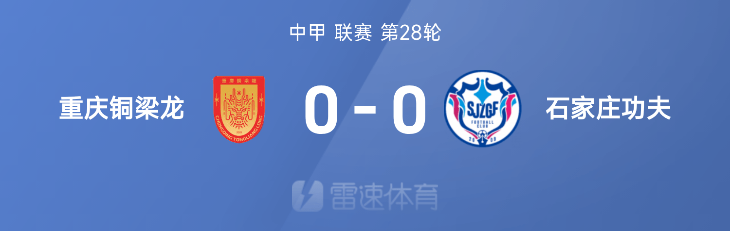 6686体育app10月26日讯 25赛季中甲联赛事第28轮,重庆铜梁龙0-0互交白卷闷平石家庄功夫。