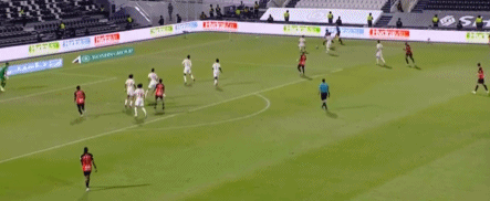 41’利雅得体育右路输送传禁区,门前包抄球员却稍慢一步错失良机