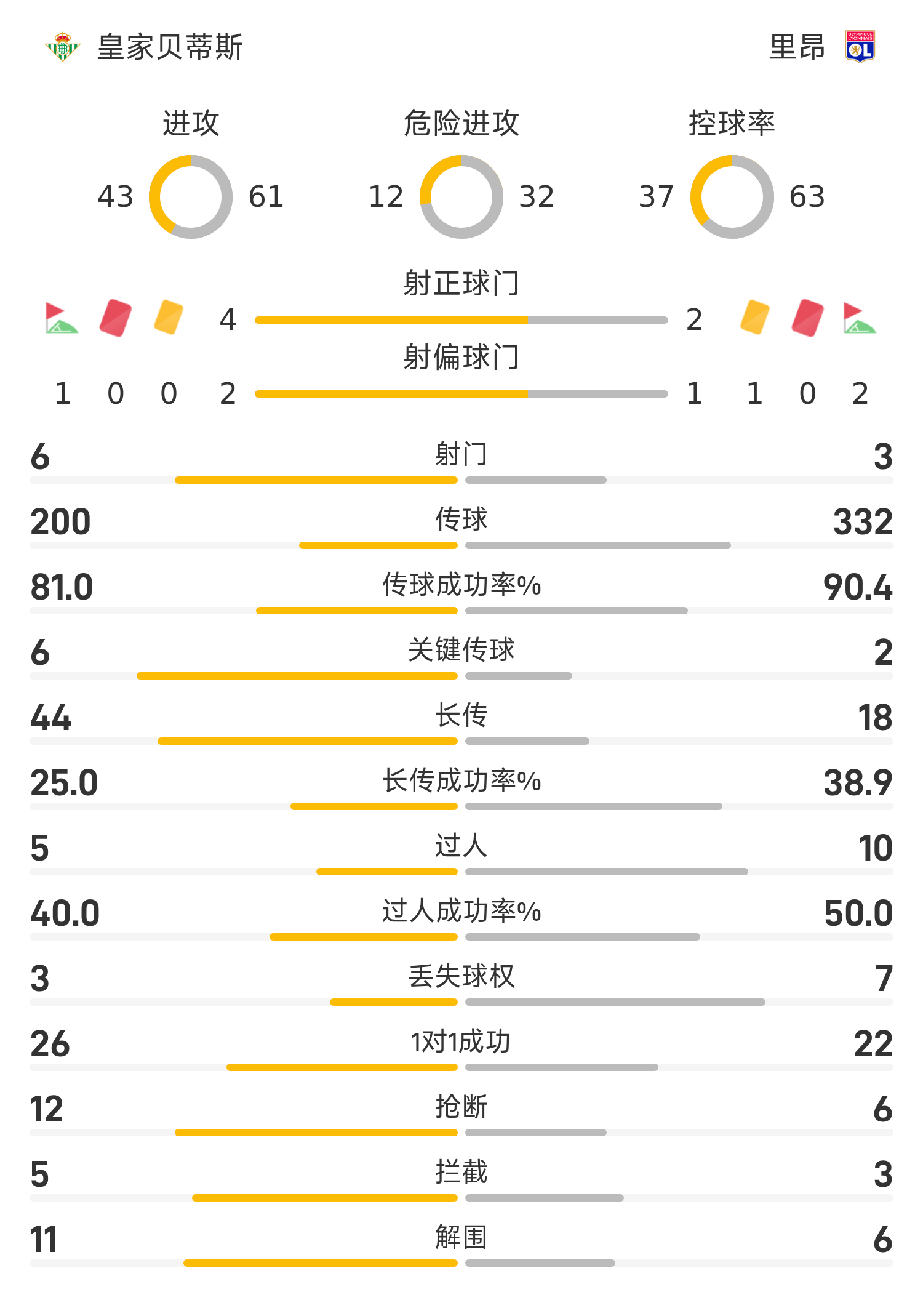 欧联半场:安东尼单刀破门,皇家贝蒂斯暂2-0里昂