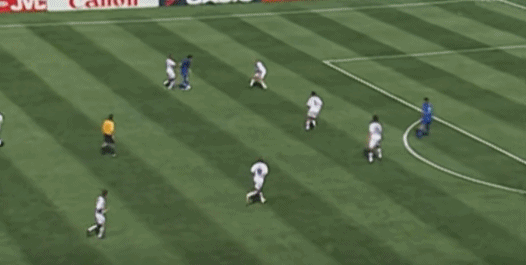 第18分钟,迪比亚吉奥送出直传球贴地斩,维埃里护球突入三秒区低射打破僵局,进球后的维埃里原地打坐庆祝,留下永恒经典。意大利1-0领跑位挪威。